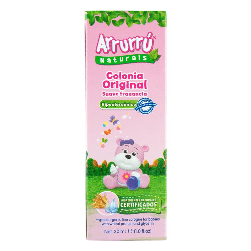 La colonia original Arrurú, gracias a su contenido de glicerina y proteína de trigo brinda hidratación y suavidad a la tierna piel de tu bebé. Su fórm