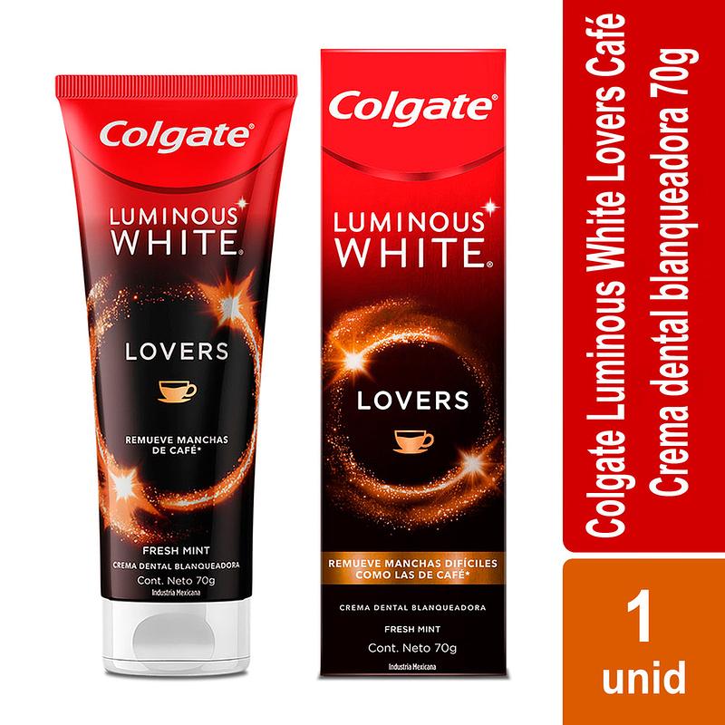 Colgate® Luminous White Lovers Café es la pasta de dientes blanqueadora ideal para los amantes del café, ya que su fórmula clínicamente comprobada