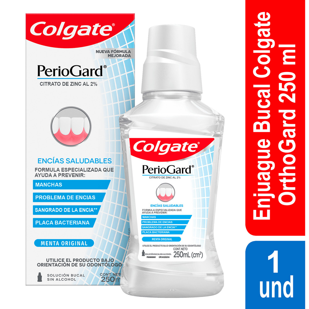 Enjuague bucal con Clorhexidina al 0.12%, ahora con tecnología Low Stain que ayuda a prevenir hasta en un 42% las manchas causadas por las clorhexidin