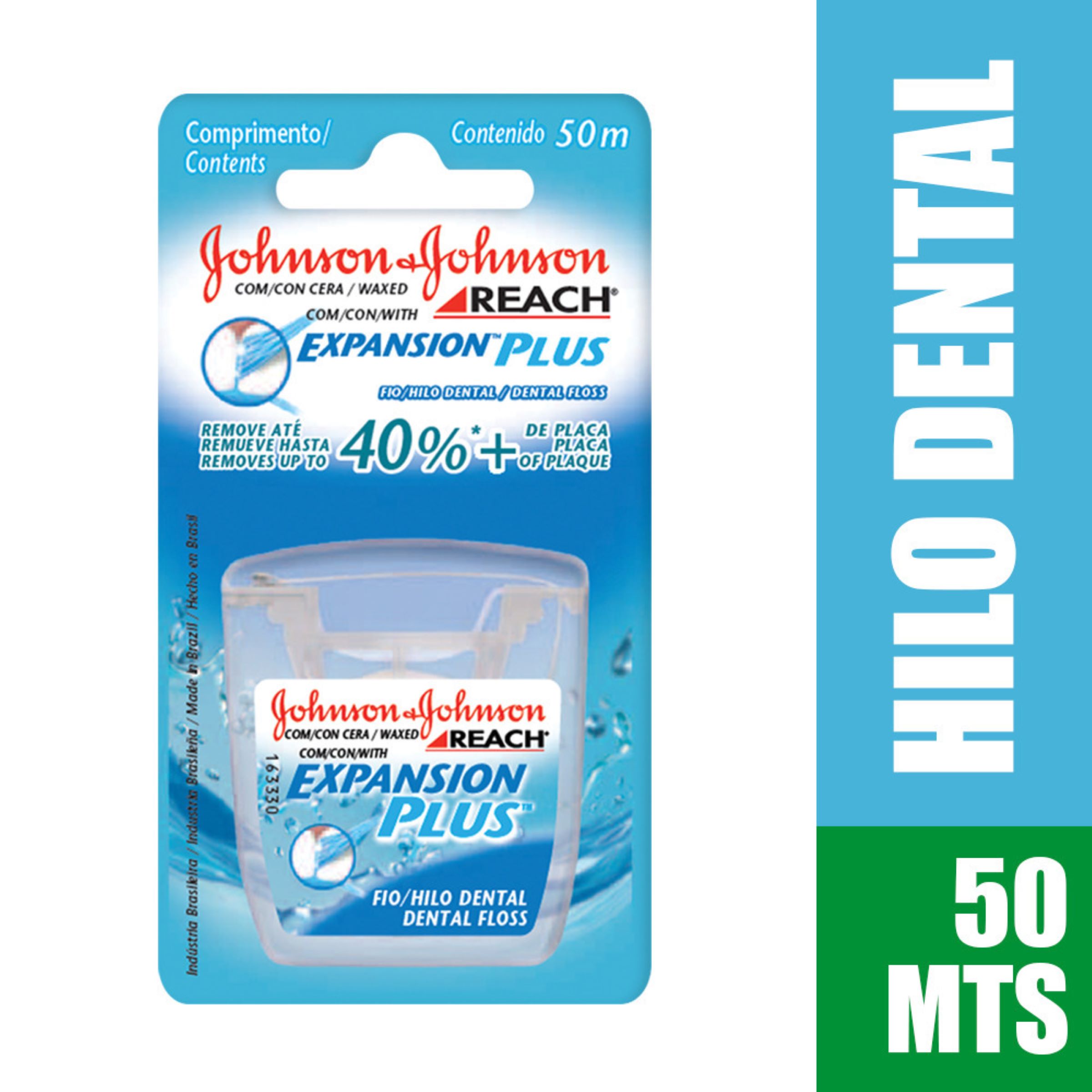 Hilo dental Reach con Expansion Plus Menta posee una tecnología de entrelazamiento que permite la expsansión del hilo al entrar en contacto con la sup