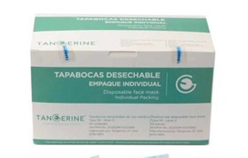 Tapabocas Desechable Tangerine Color Azul Empaque Individual