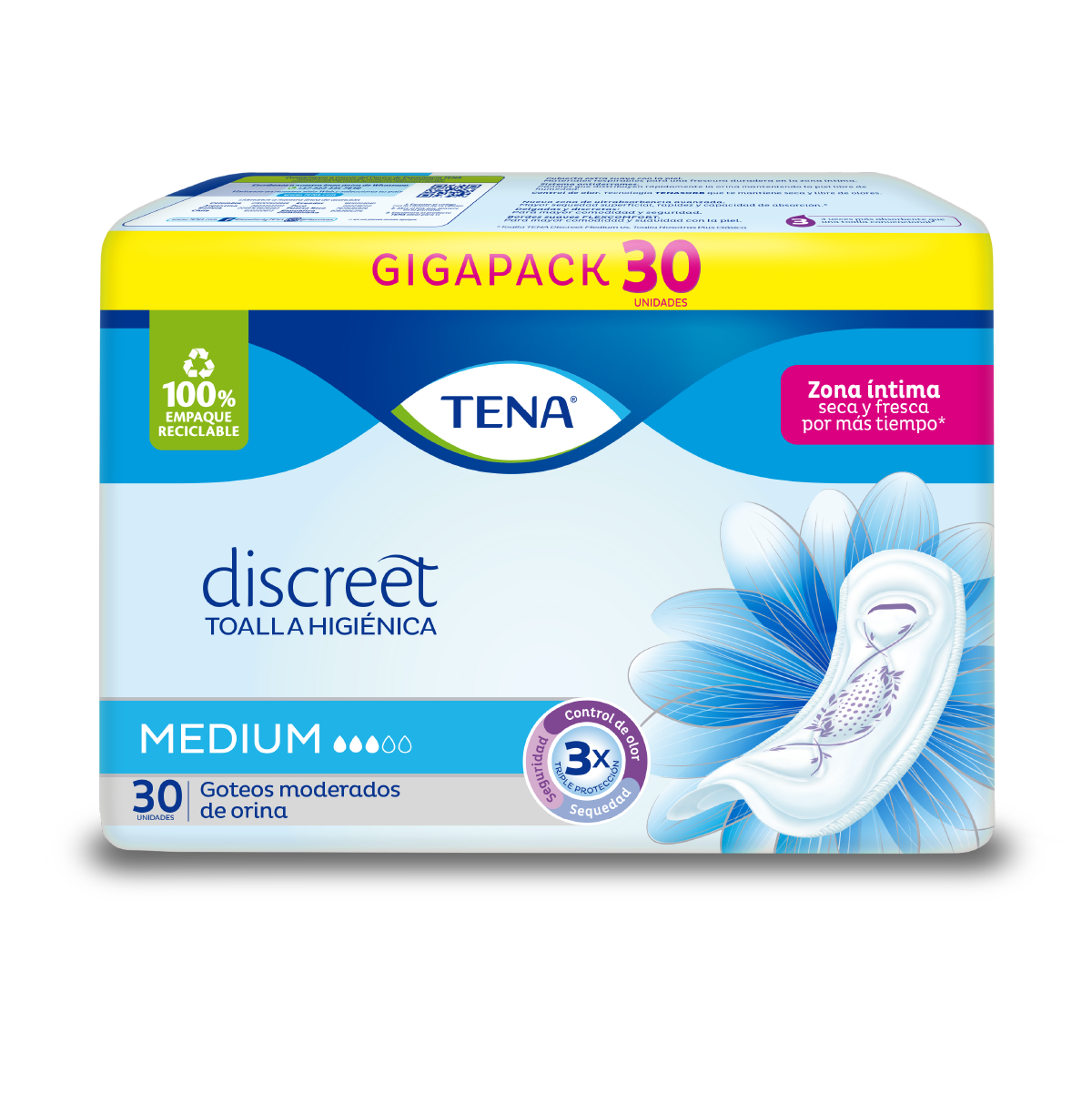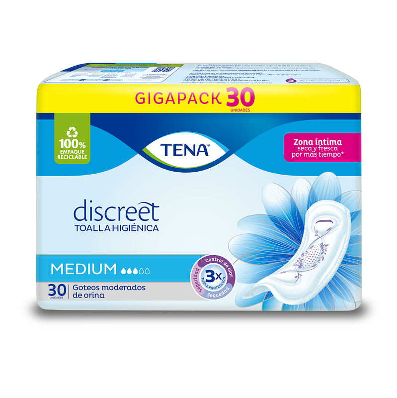 La toalla higiénica TENA es perfecta para mujeres que tienen goteos moderados de orina