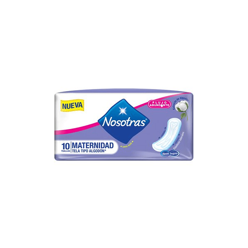 Nuestras Toallas Nosotras Maternidad son súper absorbentes, suaves y con elásticos laterales para ajustarse mejor a tu cuerpo