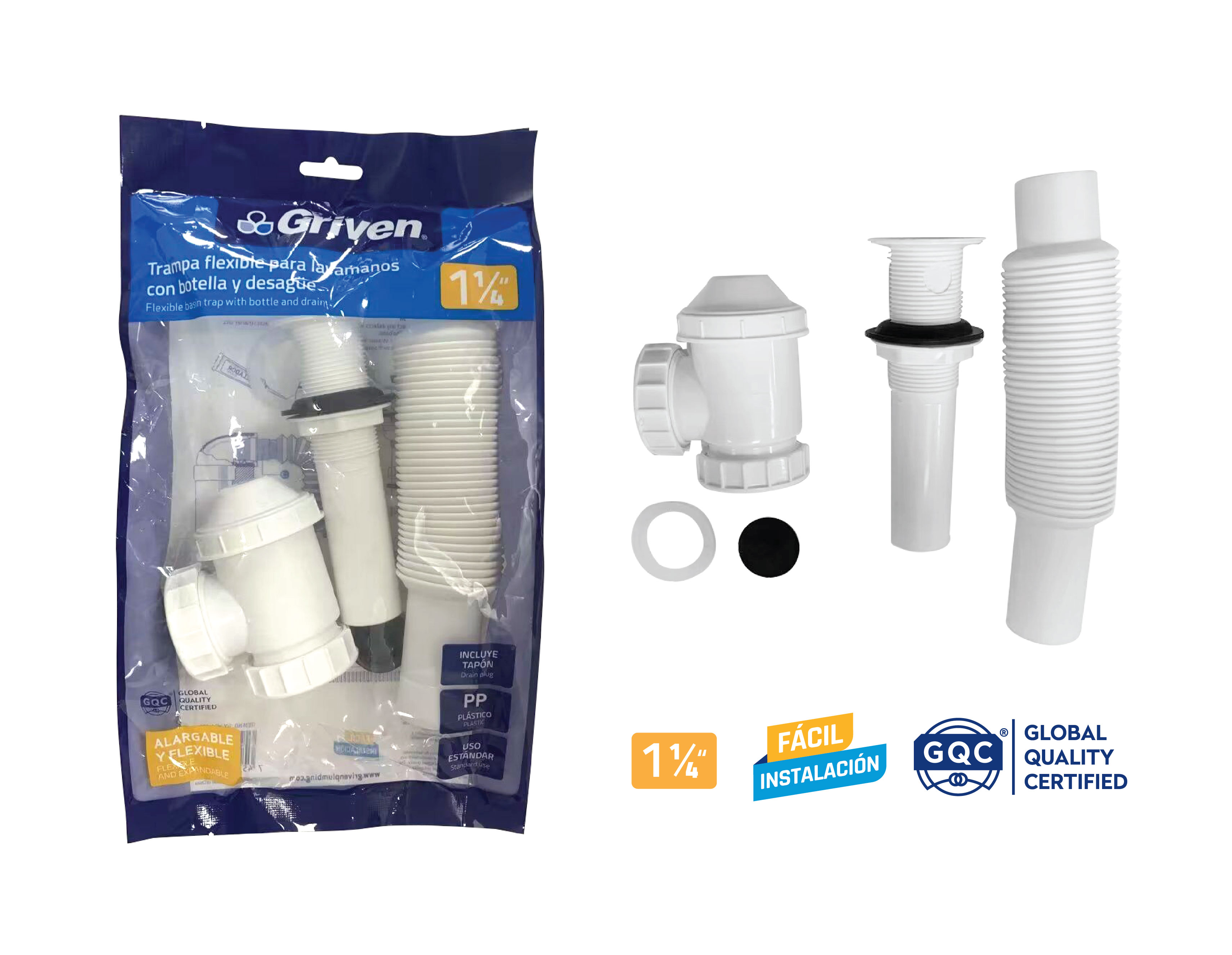 DESAGUE PARA LAVAMANOS ABS CON TRAMPA ALARGABLE Y FLEXIBLE CON BOTELLA