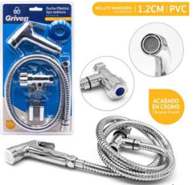 Ducha Plastica P/Baño Tipo Telefono Con Cadena 1.2m Blister.
