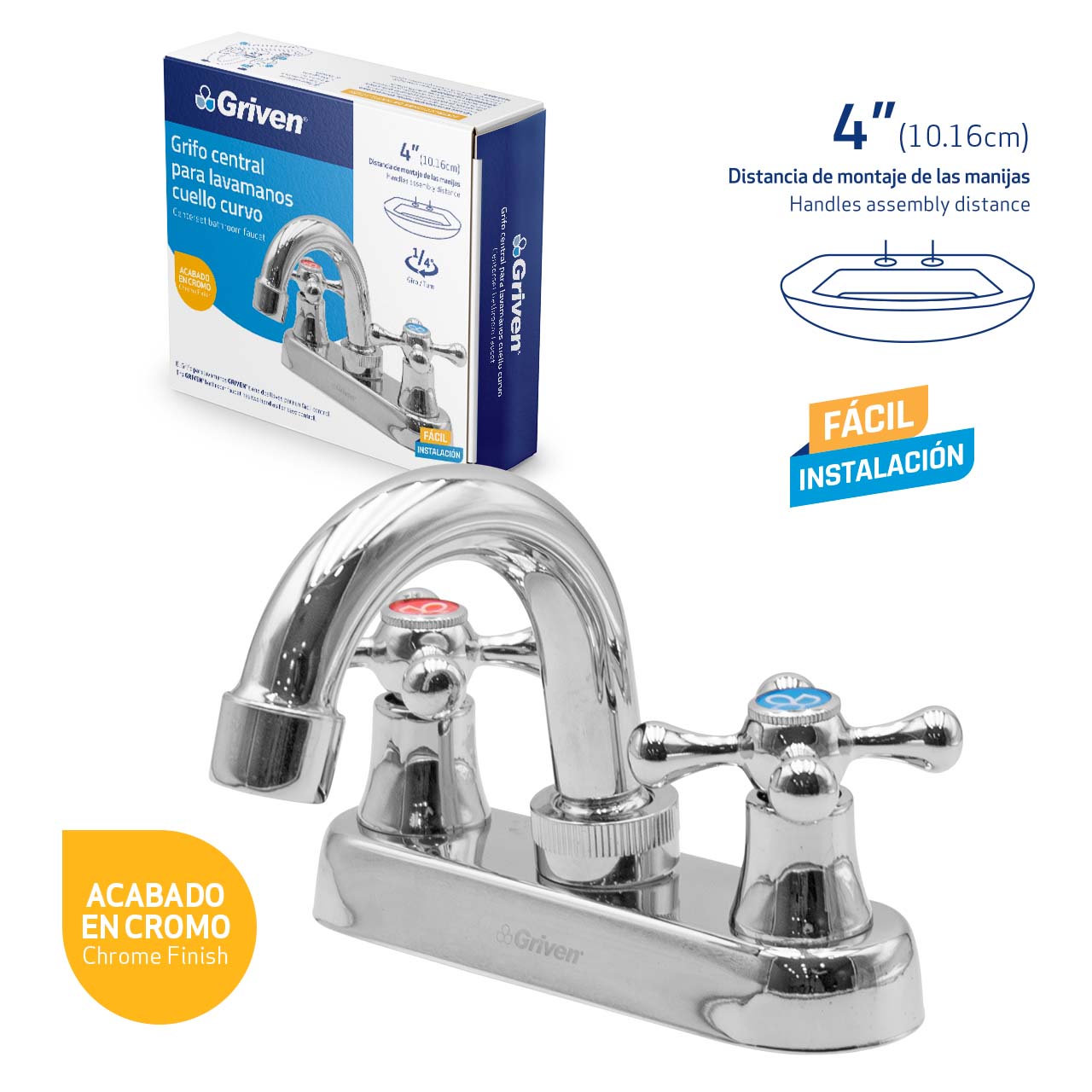 GRIFO CENTRAL PARA LAVAMANOS CUELLO CURVO 4"