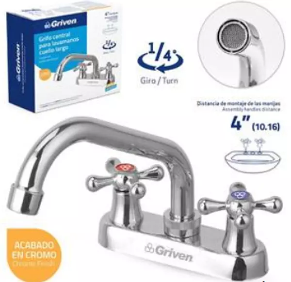 Grifo Central Para Lavamanos Cuello Largo 4" Pza