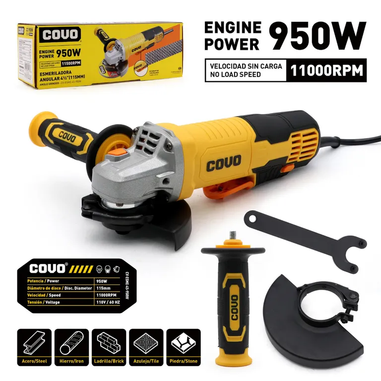 Potencia (950W): Con una potencia de 950 vatios, esta herramienta tiene la fuerza necesaria para trabajos exigentes sin sobrecalentarse. Es más que suficiente para pulir grandes superficies y para realizar tareas de esmerilado que no requieran la potencia de una esmeriladora de trabajo pesado.