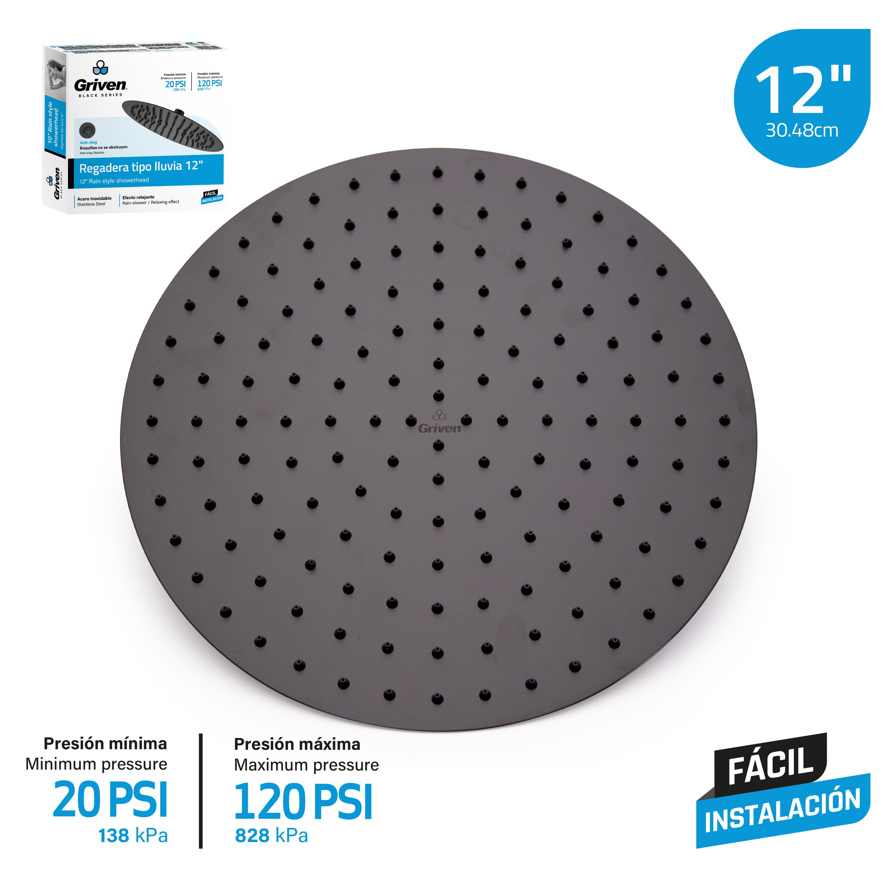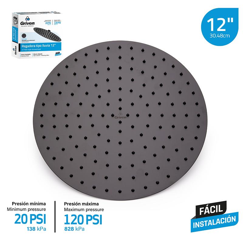 REGADERA TIPO LLUVIA DE 12" REDONDA NEGRA