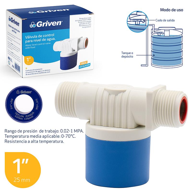 VALVULA DE CONTROL PARA NIVEL DE AGUA DE 1" CONTROLA DIRECTAMENTE EL SUMINISTRO DE AGUA Y SE DETIENE DE ACUERDO CON EL CAMBIO DE NIVEL