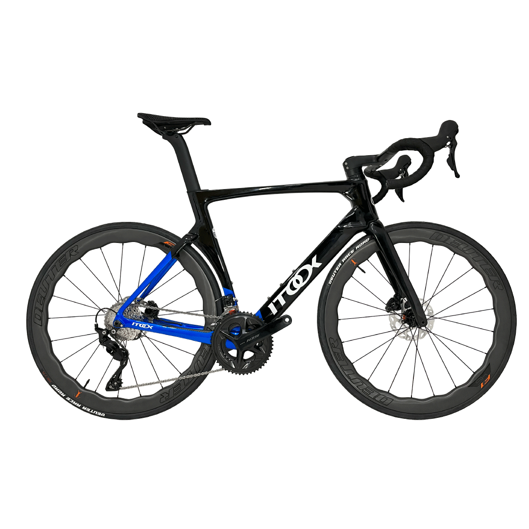 Bicicleta Compas Pro Negro Mate/Azul Grupo 105 Rines F1 Pro