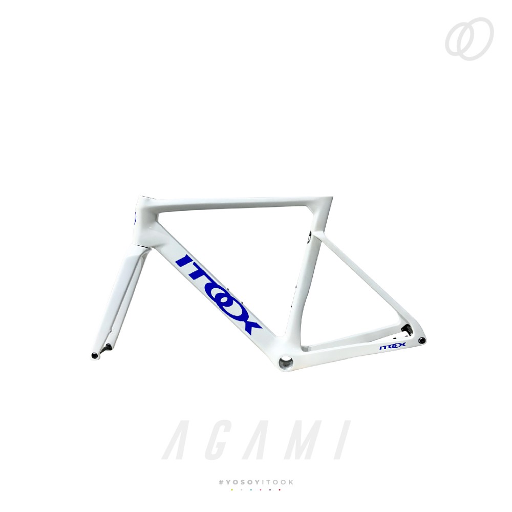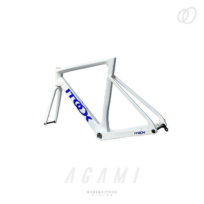 Marco de ruta Agami carbono L (530) con tenedor, timón y poste de carbono. Freno de disco. Garantía de marco de 3 años y en otros componentes un año. (Juego de Dirección