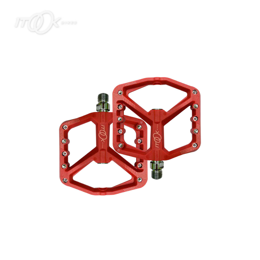 Pedal BMX Itook de nylon rojo, 283g. Máxima resistencia para trucos. Envío rápido y seguro a Bogotá y toda Colombia.