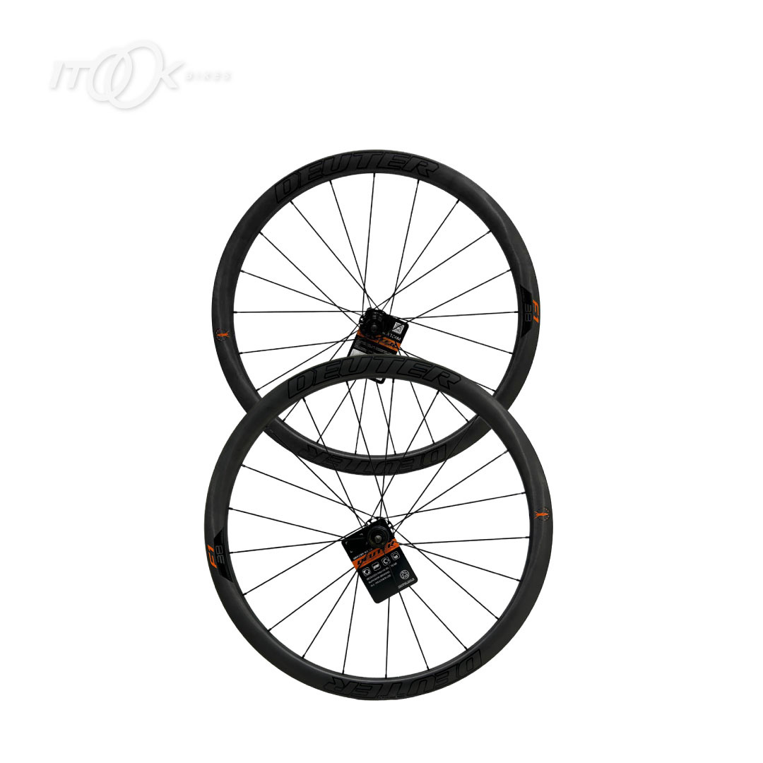 Rines de ruta Deuter F1-38H, 38 mm de perfil en carbono, sistema de disco center lock, compatibles con tubeless. Envíos a Bogotá y toda Colombia.