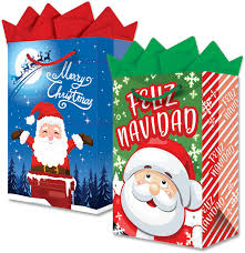 Bolsa mediana navideña con estampados variados para obsequios.