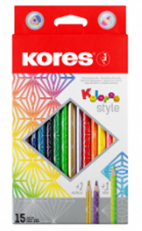 Colores Kores x12 + 3 Style, tonos variados, perfectos para colorear y dibujar, larga duración y pigmentación intensa.