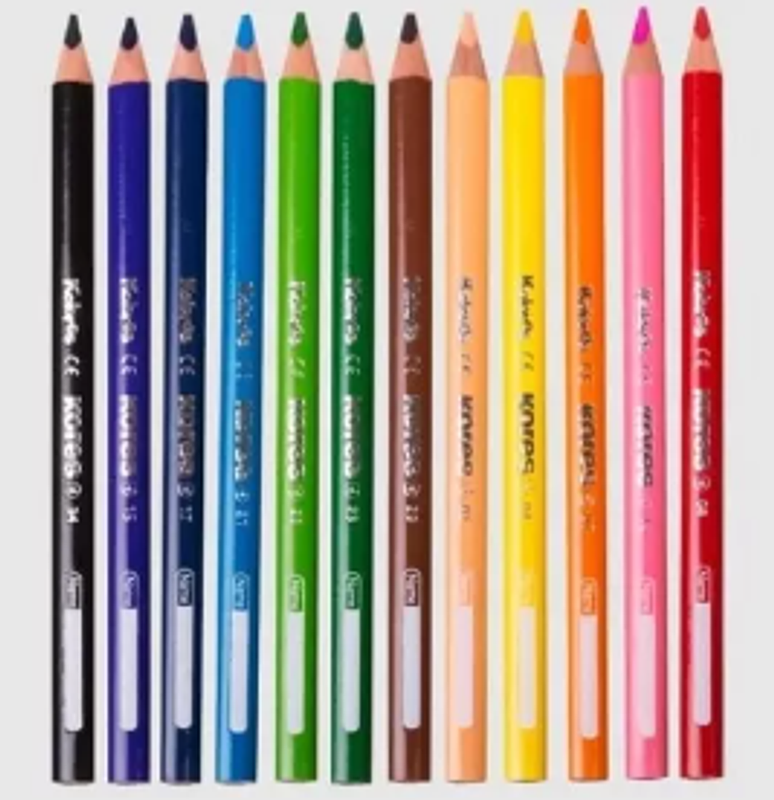 Colores Kores x13 4mm + tajalápiz triangular, punta gruesa, colores vibrantes, fácil de afilar.