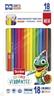 Set de 18 colores con tajalápiz para mantener trazos precisos.