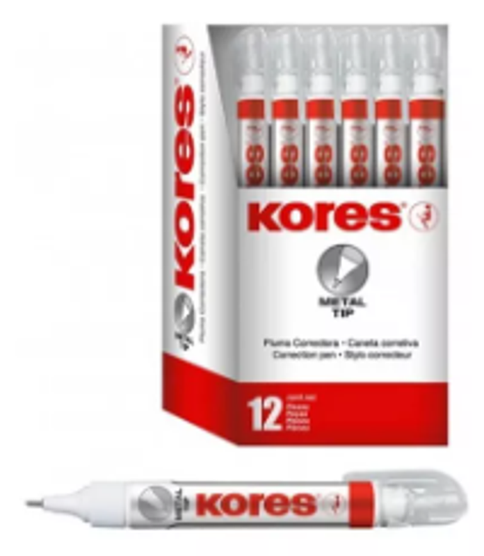 Corrector lápiz 8ml Kores, punta fina para precisión, perfecto para correcciones rápidas y exactas.