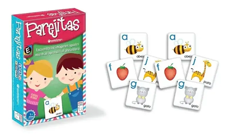 Juego de memoria visual con pares de cartas ilustradas para niños pequeños.