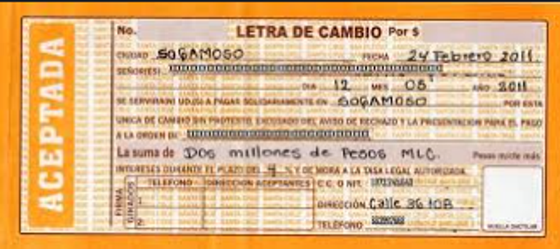 Letra de cambio en bond, ideal para transacciones comerciales.