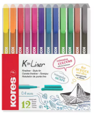 Micropunta x12 28112 Kores, ideal para dibujos técnicos, colores vivos y duraderos.