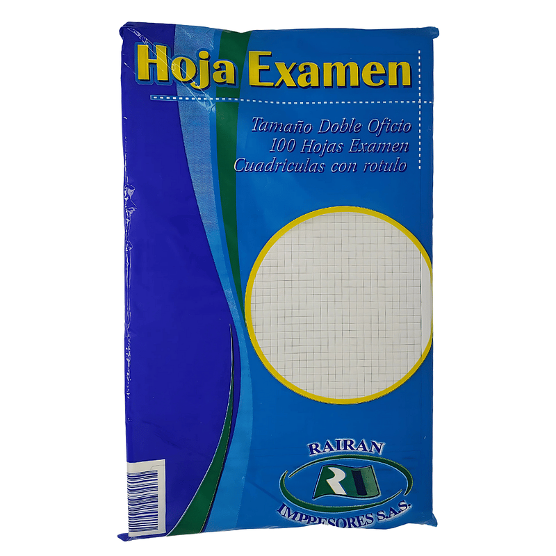 Paquete x100, hojas examen rairan-pappyer (varía según disponibilidad)