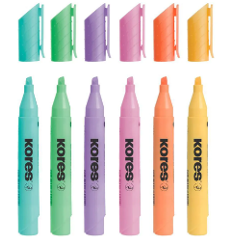 Resaltador x6 pastel Highliner Kores, tonos suaves, ideal para destacar sin sobrecargar.
