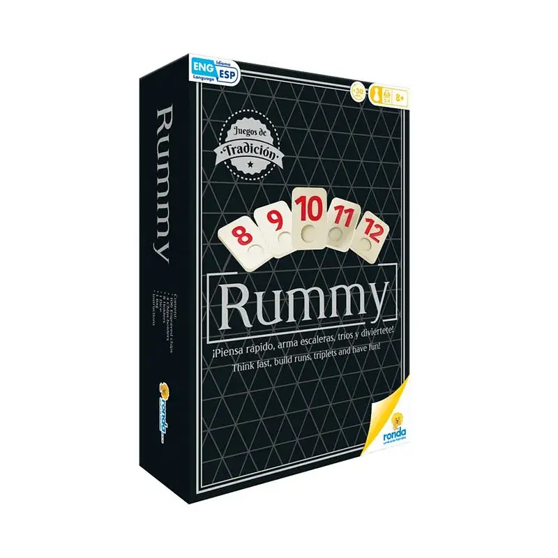 Versión tradicional del juego Rummy con cartas duraderas y reglas simples.