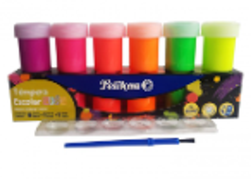 Témperas en tonos neón, colores vibrantes que destacan en cualquier superficie, ideales para proyectos creativos.