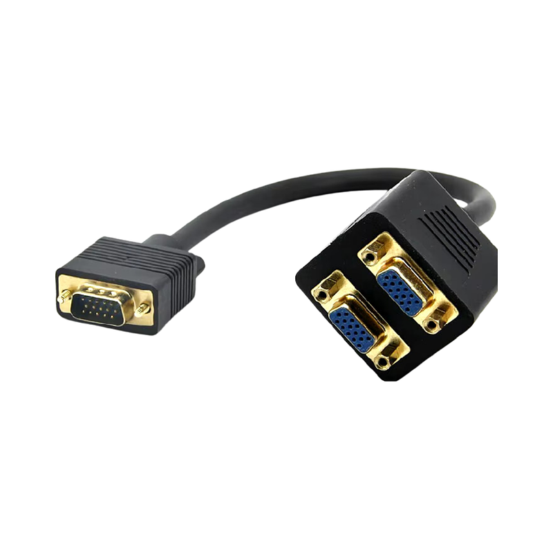 ias o video en una casa de culto. El ordenador portátil y la pantalla muestran la misma pantalla, fácil compartir información en oficina o reunión; Nota: Por favor, preste atención, el video en los dos monitores son idénticos. El cable pasivo solo duplica (no se extiende) la pantalla del PC a un monitor Especificaciones: – Entrada: VGA macho – Salida: Dos VGA hembra – Soporte de audio: No – Instalación: Plug and Play