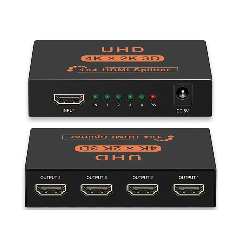 Dividir 1 señal de entrada Hdmi a 4 señales de salida idénticas Hdmi, transmitir vídeo y audio simultáneamente sin pérdida de calidad.