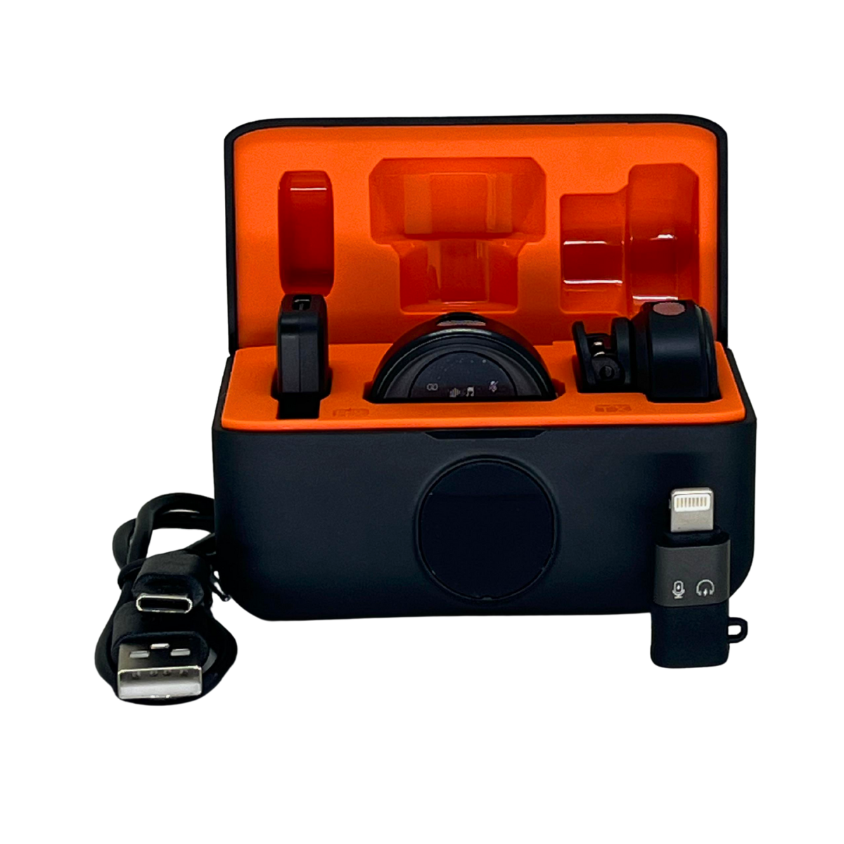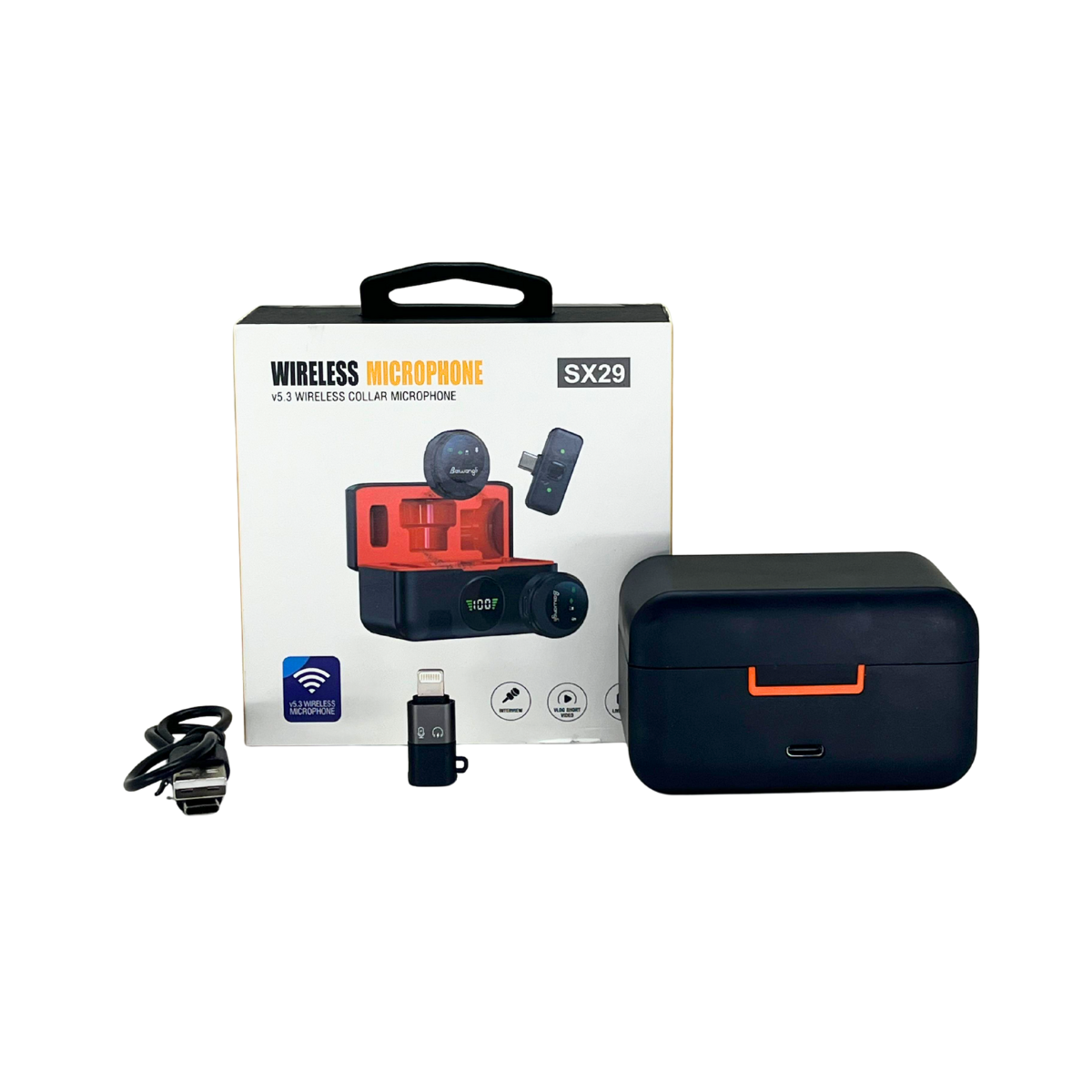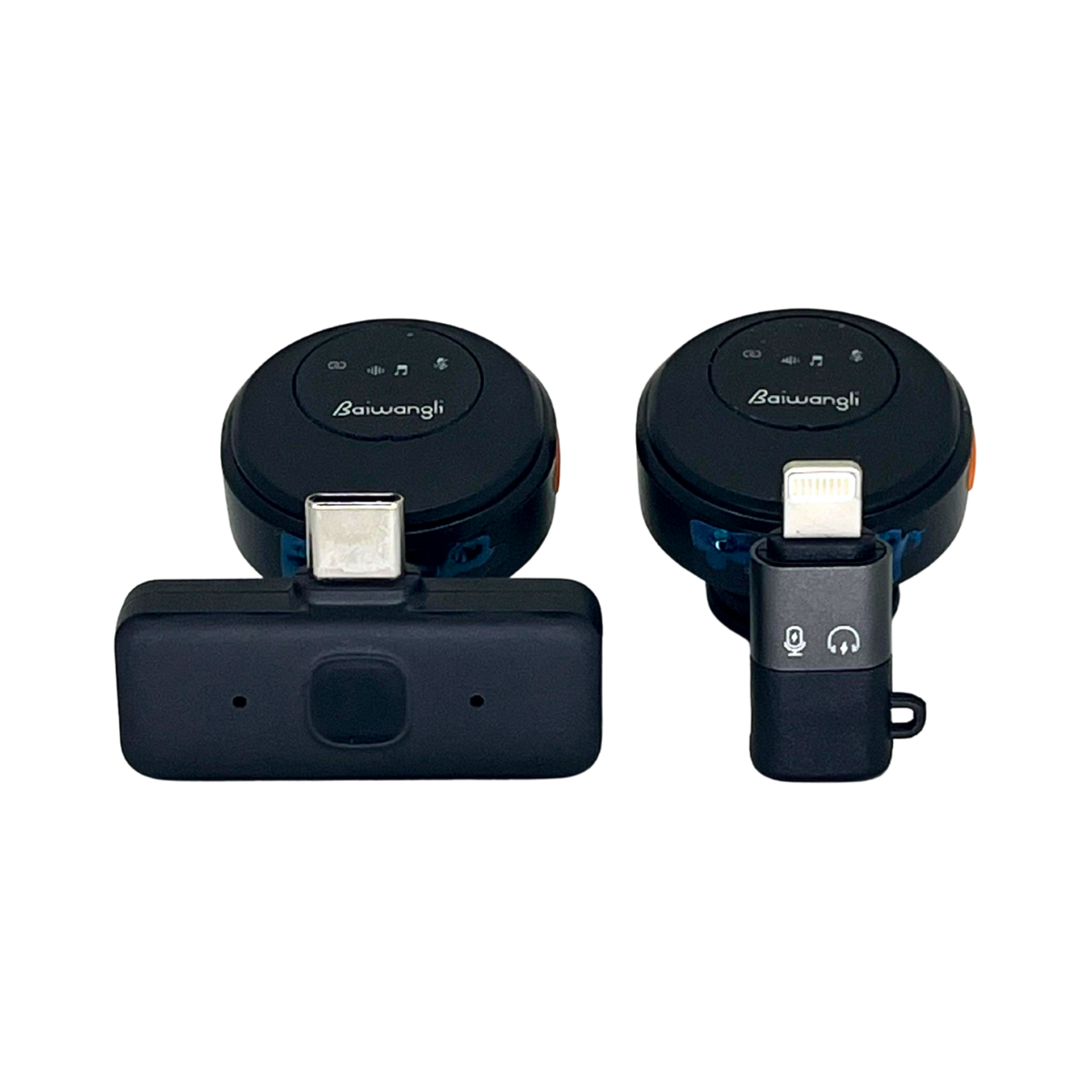 Micrófono Inalámbrico Baiwongli – Lavalier Dual con Estuche de Carga | Compatible con iPhone y Android (Lightning + USB‑C)