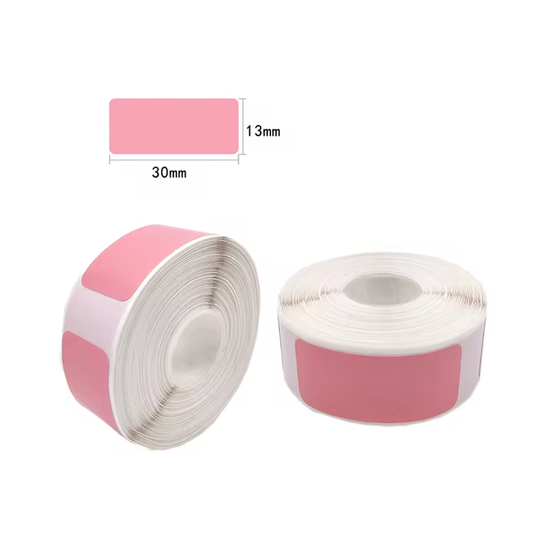 Etiqueta adhesiva rectangular de 12×40 mm en un atractivo color rosado, ideal para organizar, marcar productos, etiquetar objetos personales, oficinas o uso escolar.