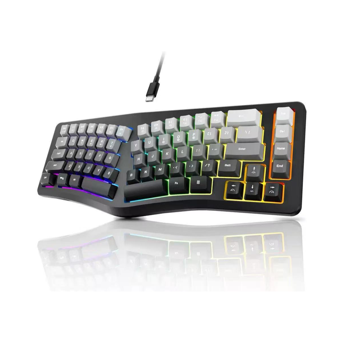 Teclado ergonómico gaming RGB alámbrico diseñado para brindar comodidad y rendimiento en largas sesiones. Su forma ergonómica ayuda a reducir la fatiga en manos y muñecas, mientras que la iluminación RGB multicolor aporta un estilo gamer moderno a tu setup. Cuenta con teclas suaves y precisas que ofrecen una respuesta rápida, ideal tanto para juegos intensos como para uso diario. Su conexión alámbrica garantiza estabilidad y rapidez, convirtiéndolo en una excelente opción para gamers que buscan confort, control y diseño en un solo teclado.