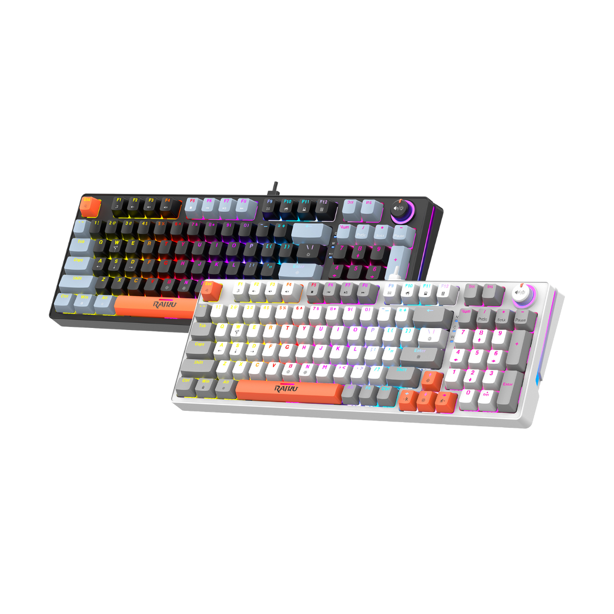 El Teclado Gamer K98 RGB ofrece una experiencia de juego potente y precisa. Incorpora iluminación RGB llamativa, teclas resistentes y respuesta rápida para un mejor control en cada partida. Su diseño moderno y cómodo lo hace ideal para largas sesiones de juego y uso diario