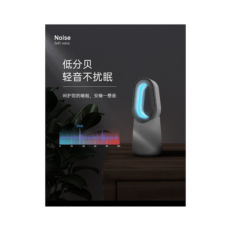 Este es un ventilador de pie sin aspas de 30 Centimetros de Alto que puede controlar con los botones tactiles, ajustar a 3 velocidades. Fácil de operar, intuitivo y claro. Este producto no solo tiene un diseño de apariencia único y hermoso con 5 modos de iluminación para noche, también garantiza el rendimiento y la calidad del producto, tanto en general como en los detalles. En general, este es un ventilador de piso sin aspas que combina buena apariencia, funcionalidad y rentabilidad.