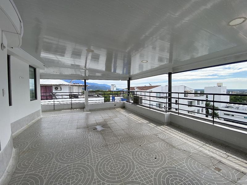 Dependencias: piso 1: sala-comedor, cocina integral, estudio, 2 alcobas auxiliares con closet, baño, zona de ropas, alcoba de servicio con baño. Piso 2: escalera en madera, terraza, alcoba principal con baño y closet. Además de 2 parqueaderos privados de 10 m2 cada uno.