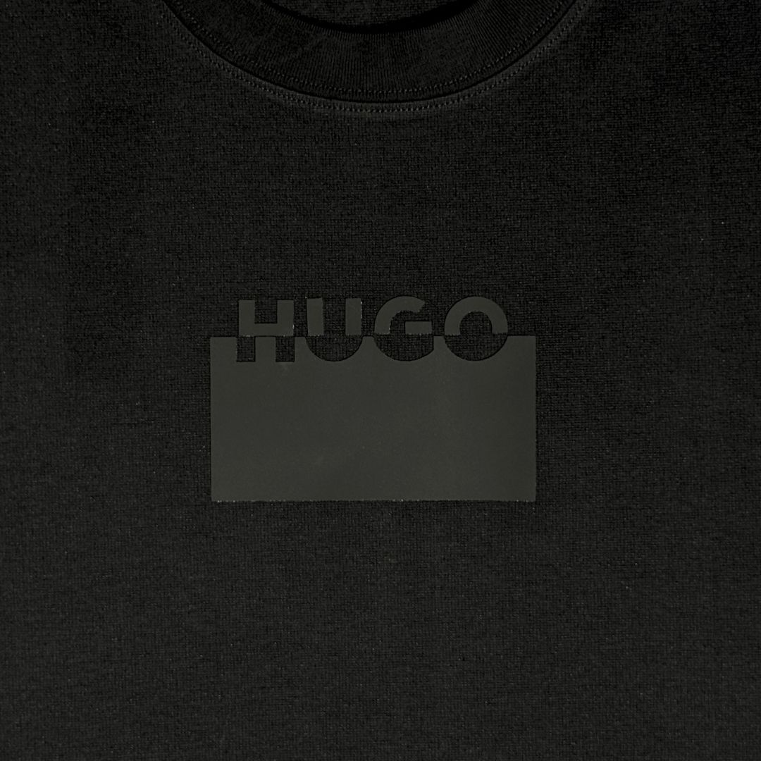 Camiseta Negra Con Estampado Hugo Alto Relieve
