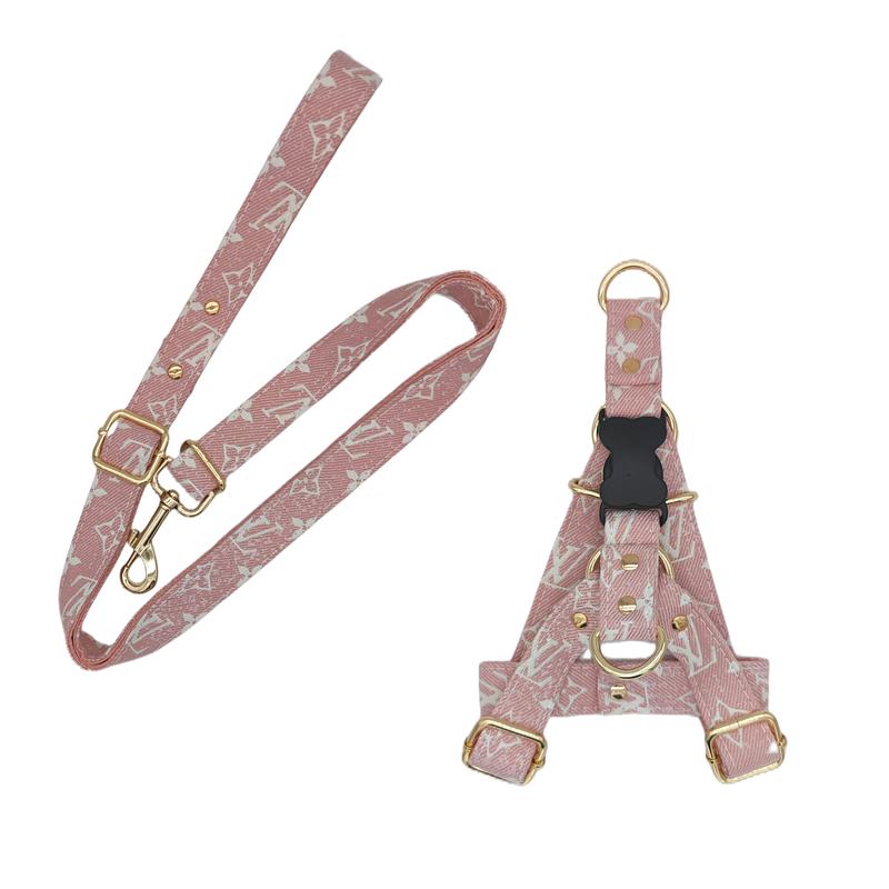 Arnés con diseño de LV para perro, incluye correa. fabricado en material grueso, resistente y fácil de lavar. ¡Color Rosa, Elige tu talla!
