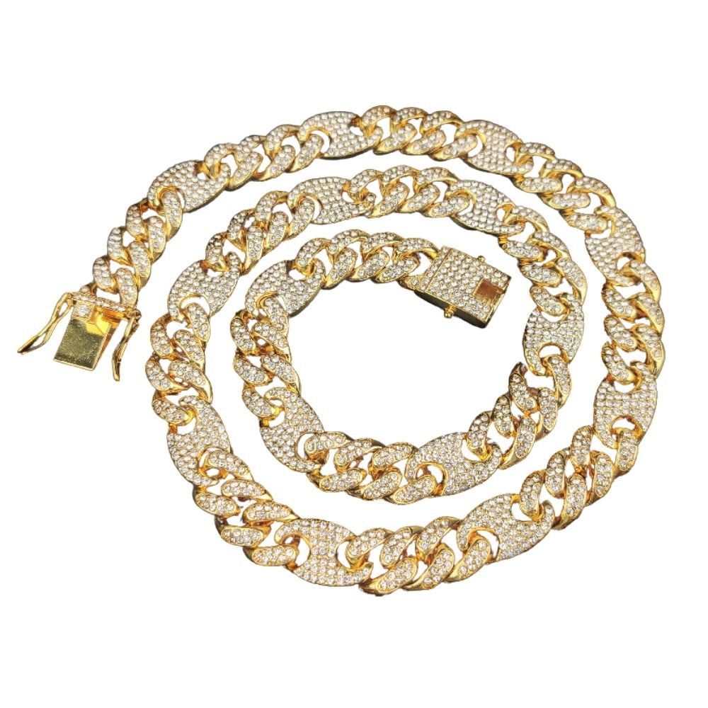 Diseño Robusto: Eslabones tipo cubano de alta resistencia con un cierre de seguridad decorado. 🔒