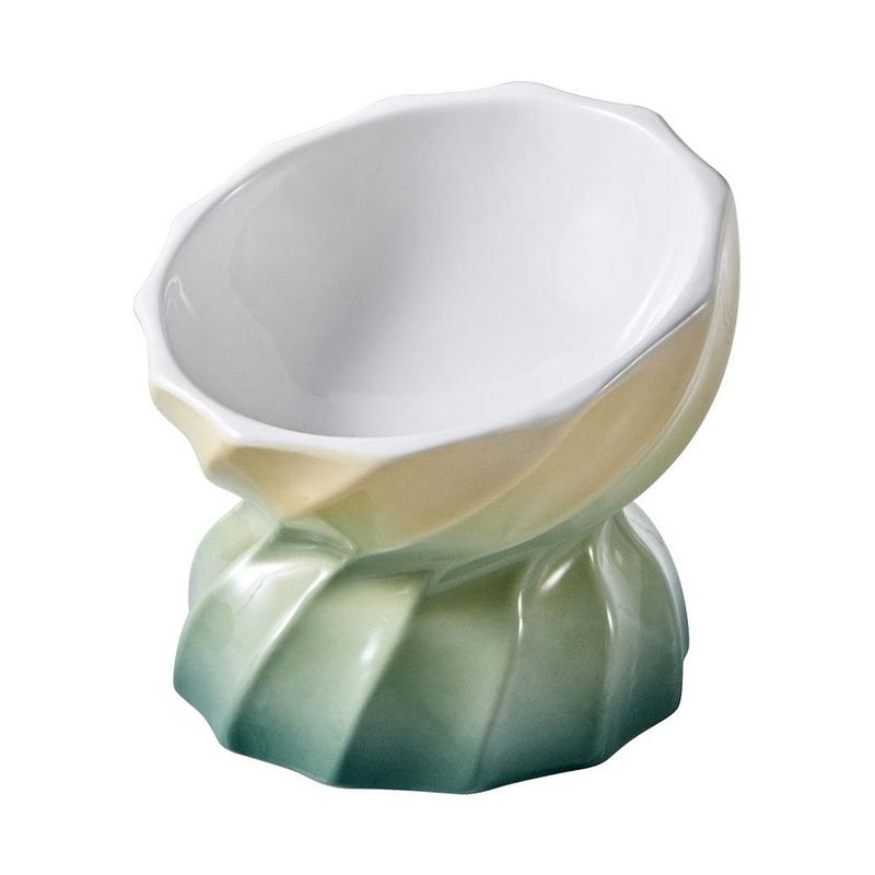 Comedero alto en porcelana con diseño de espiral. Su material lo hace pesado, resistente y fácil de limpiar y desinfectar