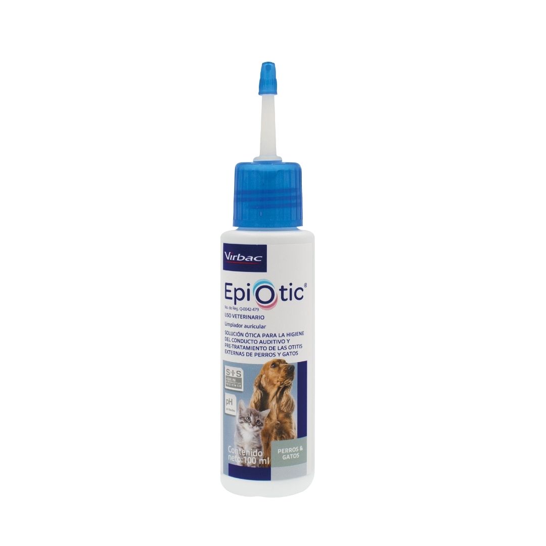 EPIOTIC® es un limpiador ótico no irritante diseñado especialmente para mantener los oídos de tus mascotas limpios, frescos y libres de infecciones. Su fórmula avanzada ayuda a remover cerumen, suciedad y restos celulares, previniendo problemas como otitis y mal olor.