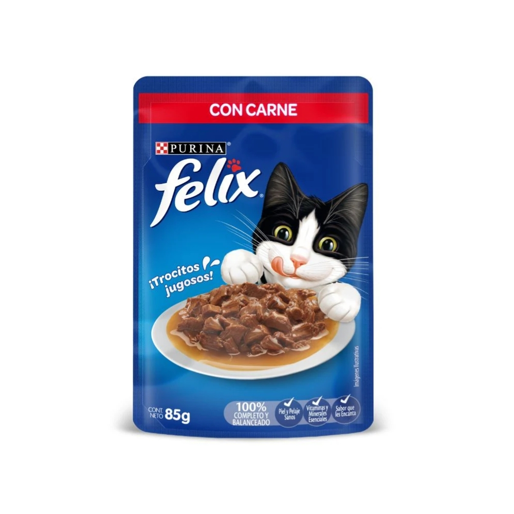 ¿Tu gato merece lo mejor? ¡Entonces no busques más! Presentamos el FELIX POUCH CARNE X 85 GR, la deliciosa comida húmeda que hará que tu felino se vuelva loco de felicidad. 🍖😻