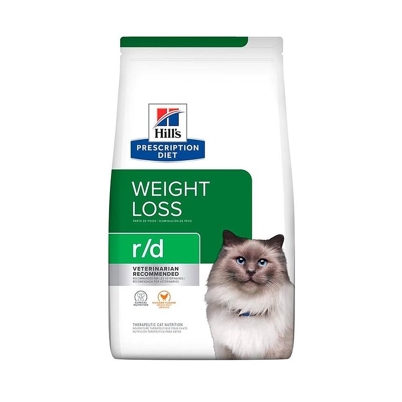 Hill's Prescription Diet r/d Feline es un alimento clínicamente probado para ayudar a los gatos a perder peso de manera segura y efectiva. Especialmente formulado por veterinarios, este alimento seco ayuda a reducir el exceso de grasa corporal mientras mantiene la masa muscular magra.