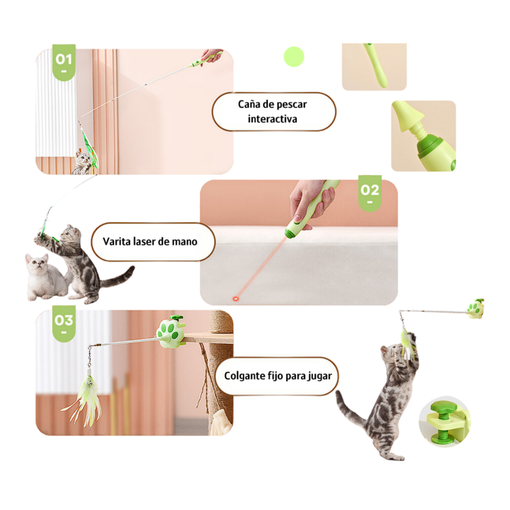 🐾 Fomenta el juego activo: ayuda a mejorar la coordinación, agilidad y concentración del felino.
