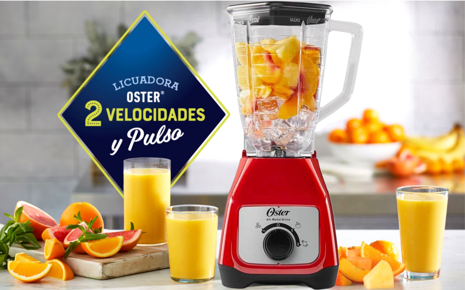 La licuadora Oster® combina practicidad y rendimiento para tu cocina. Con 2 velocidades y función de pulso, podrás preparar fácilmente jugos, batidos, salsas y más. Su motor 4 veces más duradero asegura potencia y resistencia para acompañarte en todas tus recetas.