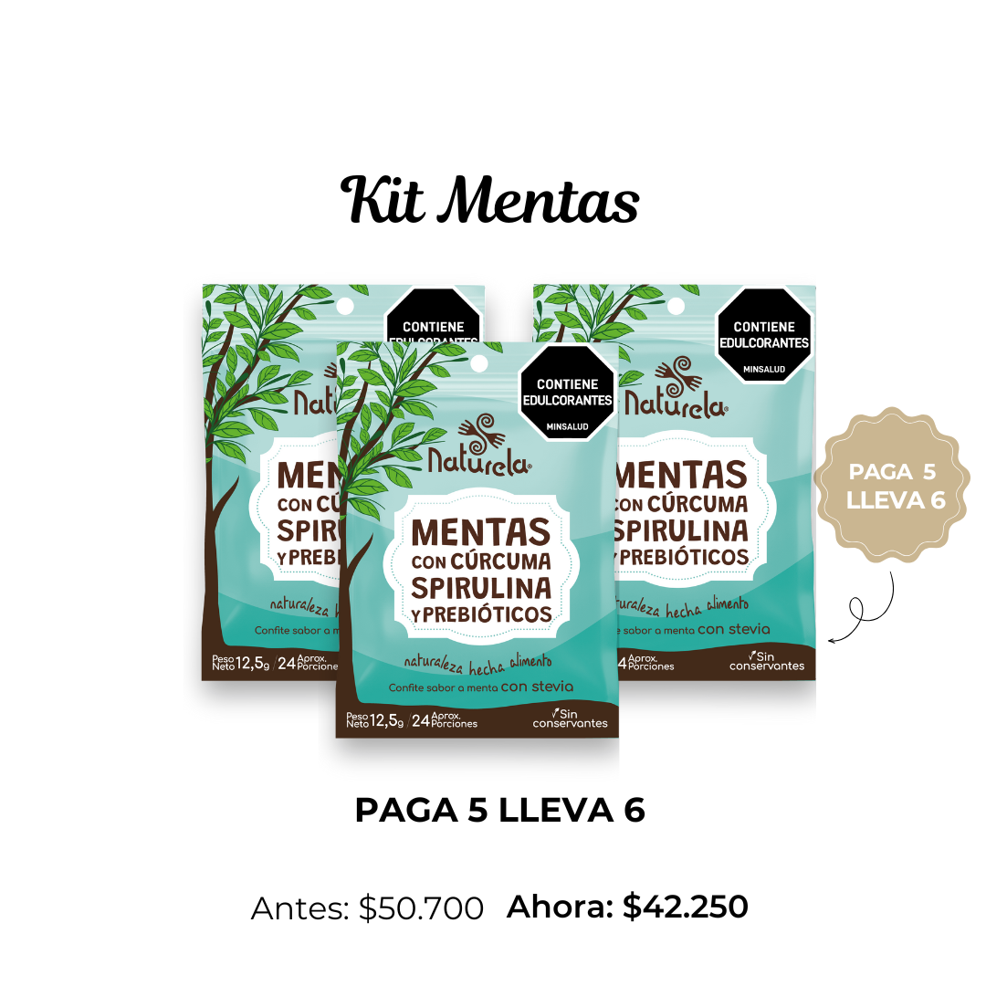 💚 Kit Paga 5 y Llévate 6 Mentas con Cúrcuma, Spirulina y Prebióticos – frescura que nutre.