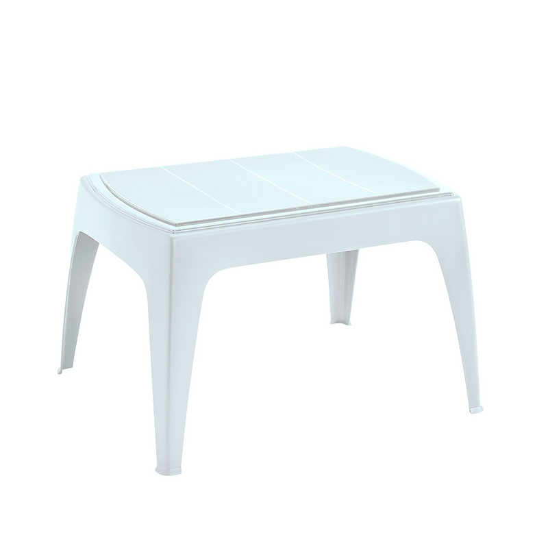 Mesa de centro pltico color blanco texturada Rattan, facil de limpiar.