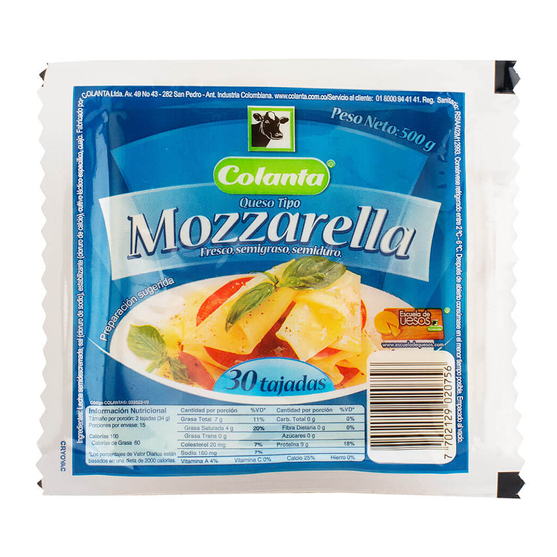 QUESO MOZARELA COLANTA TAJADO X500GR